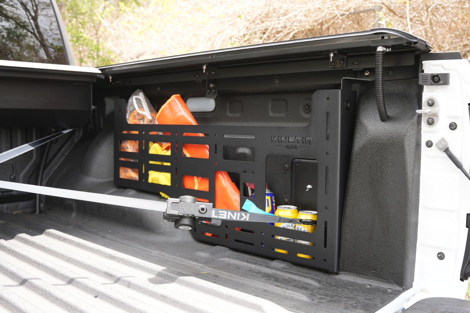 The tri-fold tonneau cover provides quick, easy access to your tub, while the MOLLE side panels transform unused space into a functional storage system—keeping your gear secure, visible, and within reach.