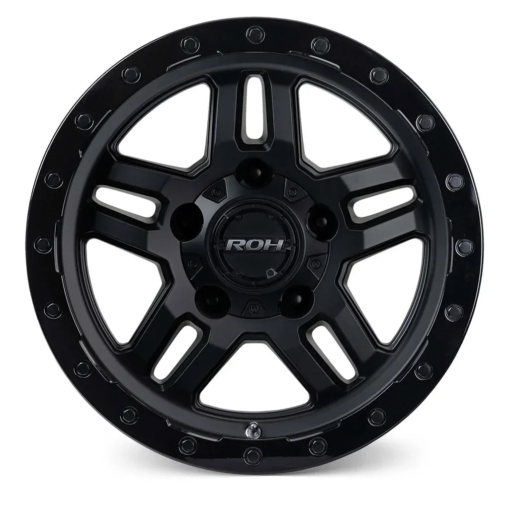 Part of the exclusive range of ROH Dakar Proven Wheels®, the ROH Hammer 4×4 wheel comes in a Matt Black finish with a gloss black outer lip and black anodised aluminium bolts (not chrome plastic) and is available in 16”, 17”, and 18” sizes.